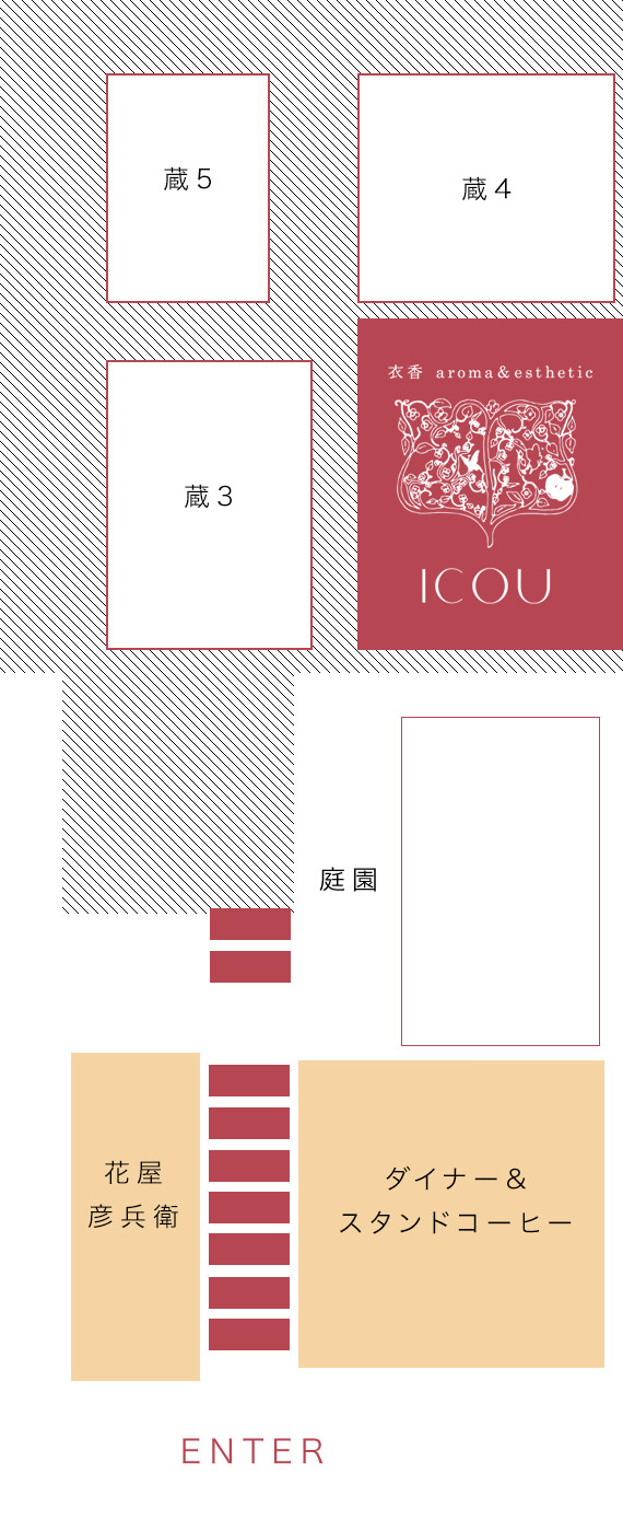 右の蔵の店舗がICOUになります。